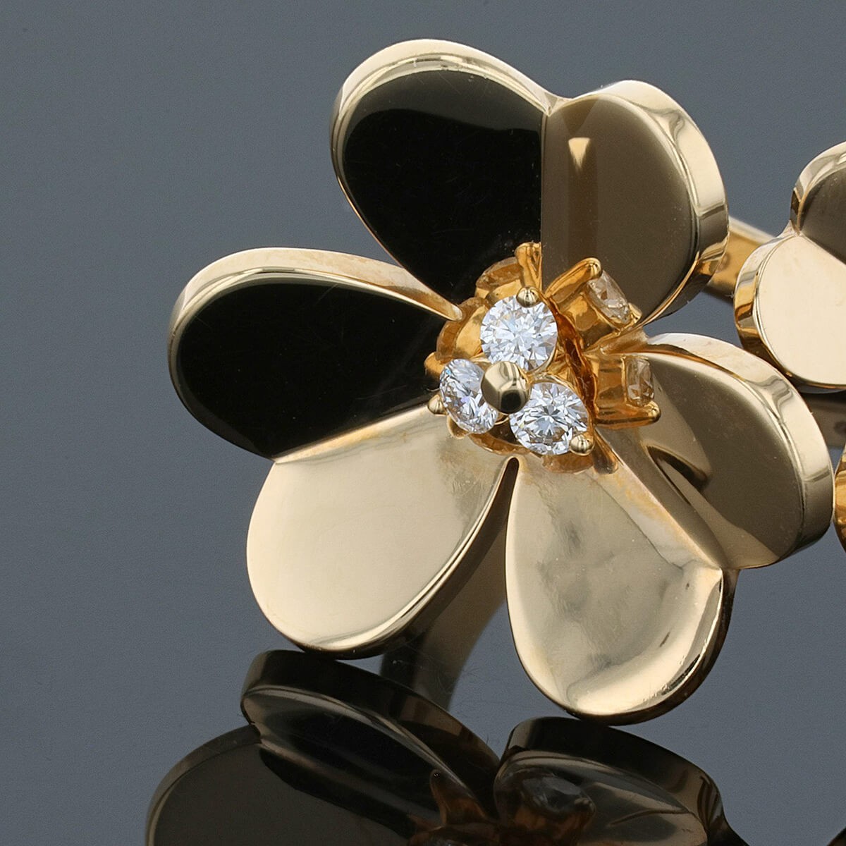 Bague en or jaune, stylisant 2 fleurs, les pistils ornés de diamants. Signée et numérotée.