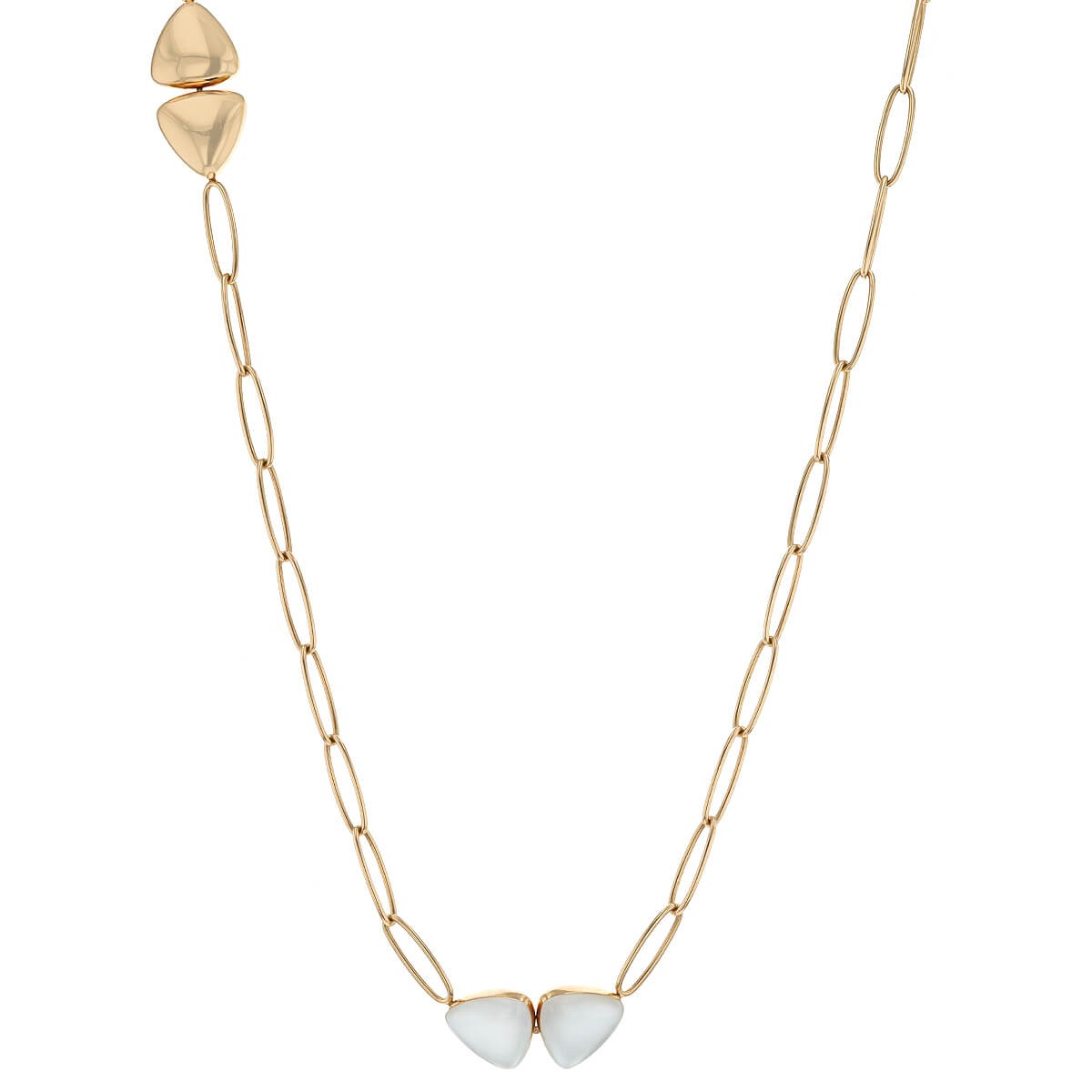Collier sautoir en or rose, maille ovale ponctuée de motifs triangulaires en volume, certains rehaussés de nacre blanche. Signé et numéroté.