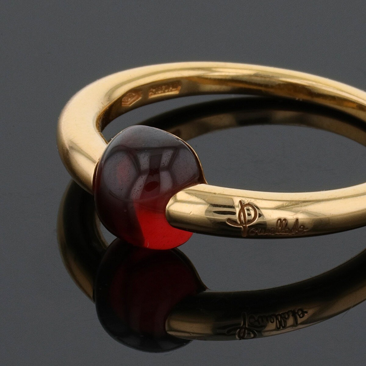 Bague en or rose, ornée d’un grenat en cabochon. Signée et numérotée.
