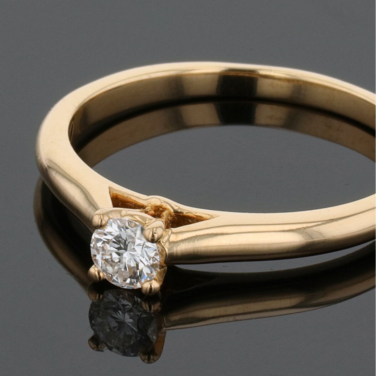 Bague solitaire en or jaune, ornée d’un diamant de 0,19 ct en serti griffes. Signée et numérotée.