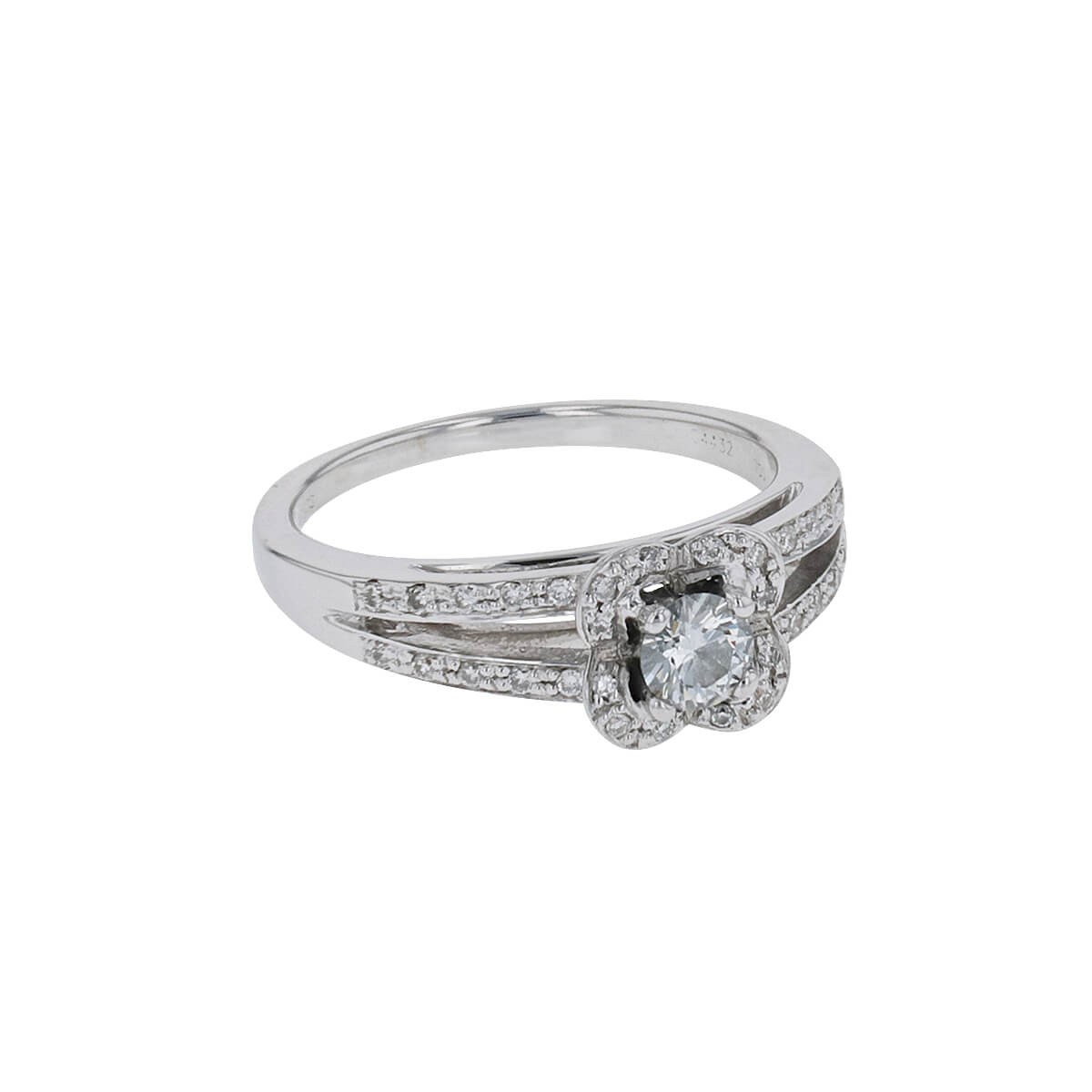Bague en or blanc, ornée d'un diamant de 0,20 ct env. entouré d'un motif polylobé diamanté. Signée et numérotée.