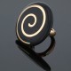 Bague en or rose, rehaussée d’un important motif rond en bois avec volute en or rose. Signée.