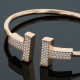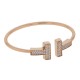 Bracelet jonc ouvert souple en or rose, taille large, les embouts stylisant le “T” de Tiffany sertis de diamants. Signé.