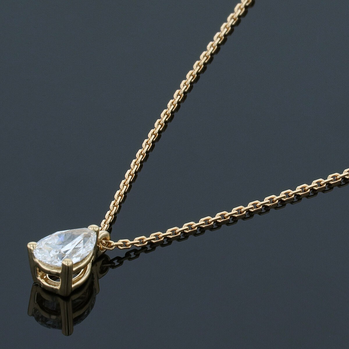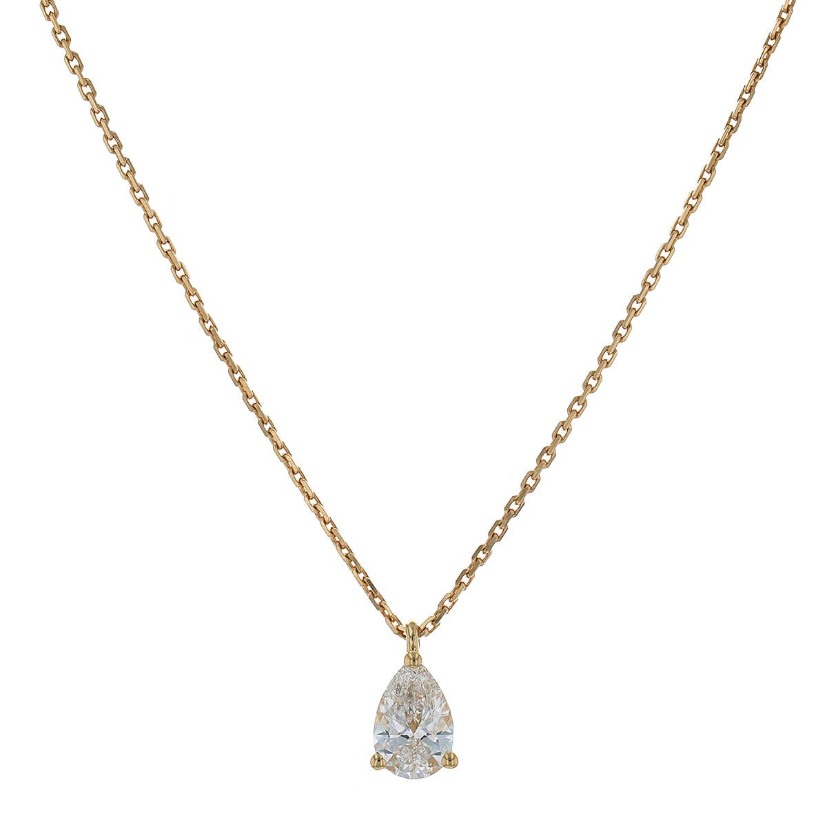 Collier en or jaune, maille forçat, retenant en pendentif un diamant taille poire d’environ 0,5 ct en serti griffes, agrémenté d’un fermoir anneau ressort.
