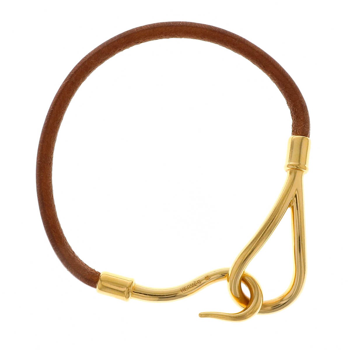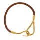 Bracelet en cuir marron retenant en son centre un fermoir à décor de crochet en métal doré. Signé.
