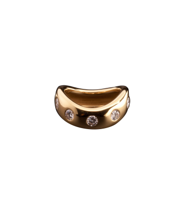 Bague asymétrique en or jaune, ponctuée de 5 diamants en serti clos.