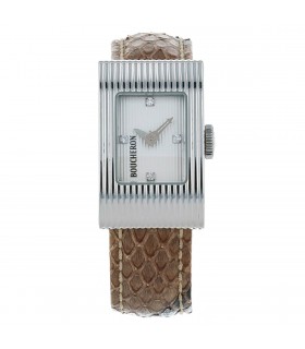 La maison Boucheron est également à la base de nombreuses créations horlogères. Elle compte de nombreux modèles de montres emblématiques tel que les collections Reflet, Solis, Serpent Bohème, Epure et bien d’autres. Retrouvez ces montres signées Boucheron d’occasion à prix réduit toute l’année dans notre magasin Mikael Dan Paris 8ème. Toutes nos montres de seconde main sont authentifiées par nos experts et visibles sans rendez-vous.