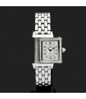 Montre bracelet de femme en acier, boîtier réversible dévoilant un cadran argenté avec chiffres arabes et index, lunette ornée de lignes de diamants sur les deux faces. Mouvement quartz. Bracelet acier, maillons articulés avec boucle déployante en acier. Signée et numérotée 2093387.