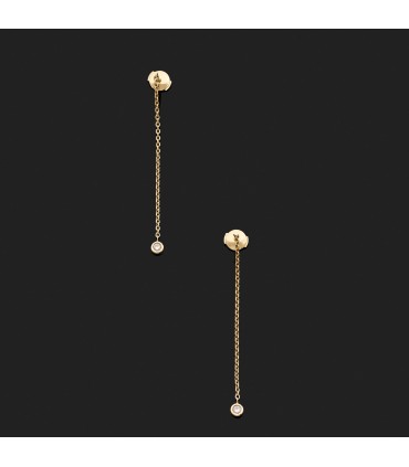 Boucles d’oreilles en or jaune, stylisant une chaîne retenant un diamant. Signées et numérotées K1606.