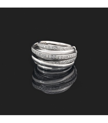 Bague en or blanc, composée de 10 anneaux entrelacés dont 3 ornés de lignes de diamants. Signée et numérotée B13066.