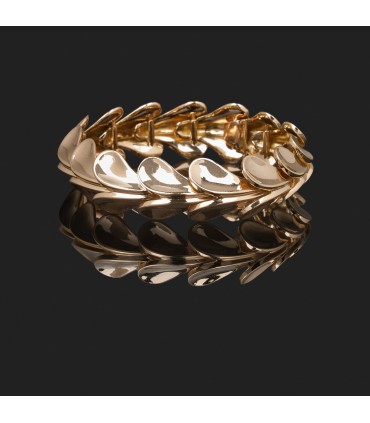 Bracelet en or rose, maillons articulés à décor de palmettes.