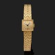 Montre bracelet de femme en or jaune, cadran doré rayonnant avec index appliqués. Mouvement mécanique. Bracelet or jaune, maille tressée avec fermoir à cliquet. Signée.