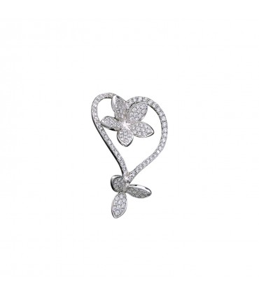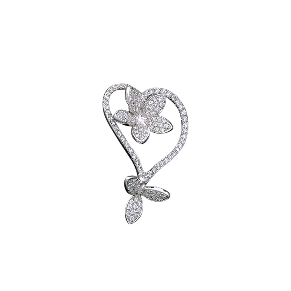 Pendentif en or blanc, stylisant un coeur rehaussé d’une fleur et de feuillage, l’ensemble pavé de diamants.