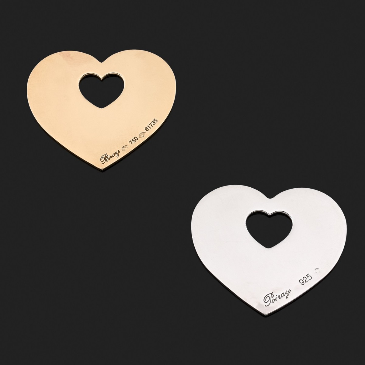 Pendentif composé de 2 coeurs ajourés, l’un en or jaune et l’autre en argent. Signé et numéroté 61735.
