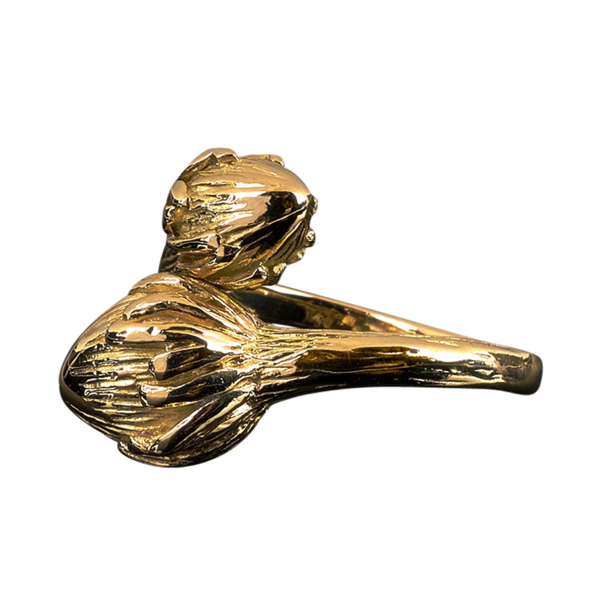 Bague en or jaune, stylisant un toi et moi à décor de fleurs.