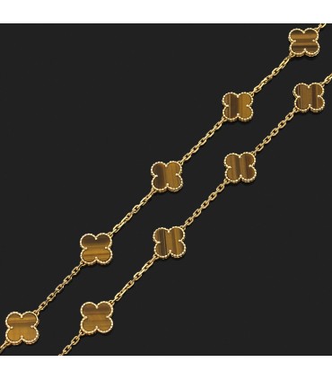 Collier en or jaune composé de 10 motifs “Alhambra” en oeil de tigre. Signé et numéroté BL188481.