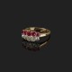 Bague jarretière en or jaune et platine, ornée d’une ligne de diamants taille ancienne et et de rubis facettés.