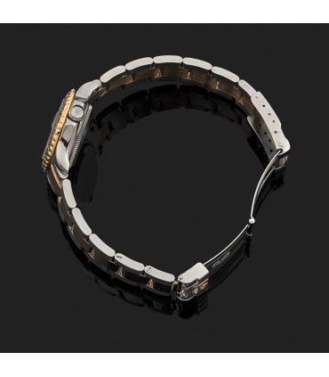 Montre bracelet de femme en or jaune et acier, cadran argenté avec index appliqués luminescents, affichage de la date par guichet à 3 heures, lunette graduée en or jaune. Mouvement automatique. Bracelet or jaune et acier, maillons oyster avec boucle déployante réglable en acier. Signée et numérotée F795181/169623.