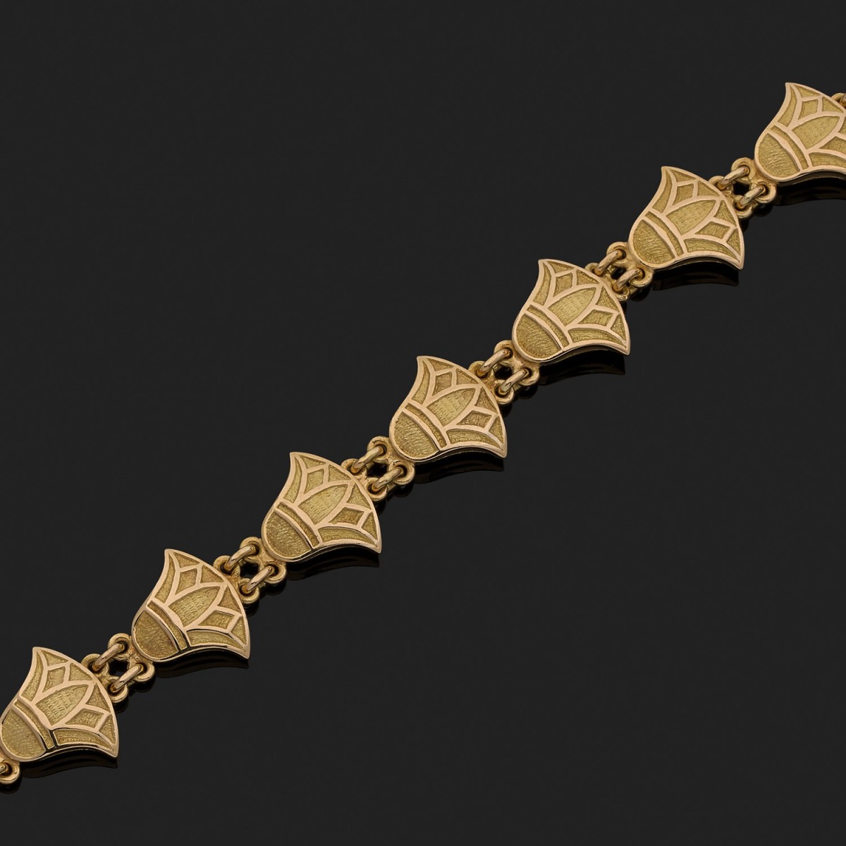 Bracelet en or jaune, composé d’une suite de fleurs de Lotus, fermoir à cliquet avec huit de sécurité.