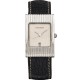 Montre bracelet en acier, cadran argenté stylisé, affichage de la date par guichet à 6 heures, lunette godronnée. Mouvement quartz. Bracelet interchangeable en cuir bleu avec fermoir invisible à glissière. Signée et numérotée AD31345. Accompagnée de 2 bracelets supplémentaires.