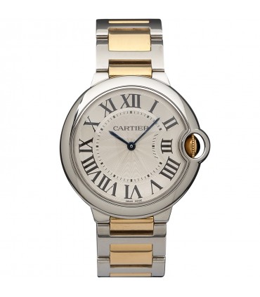 Montre bracelet en or jaune et acier, cadran argenté rayonnant avec chiffres romains peints, chemin de fer pour les minutes, lunette stylisée. Mouvement quartz. Bracelet or jaune et acier, maillons articulés avec boucle déployante en acier. Signée et numérotée 213146NX 3005.