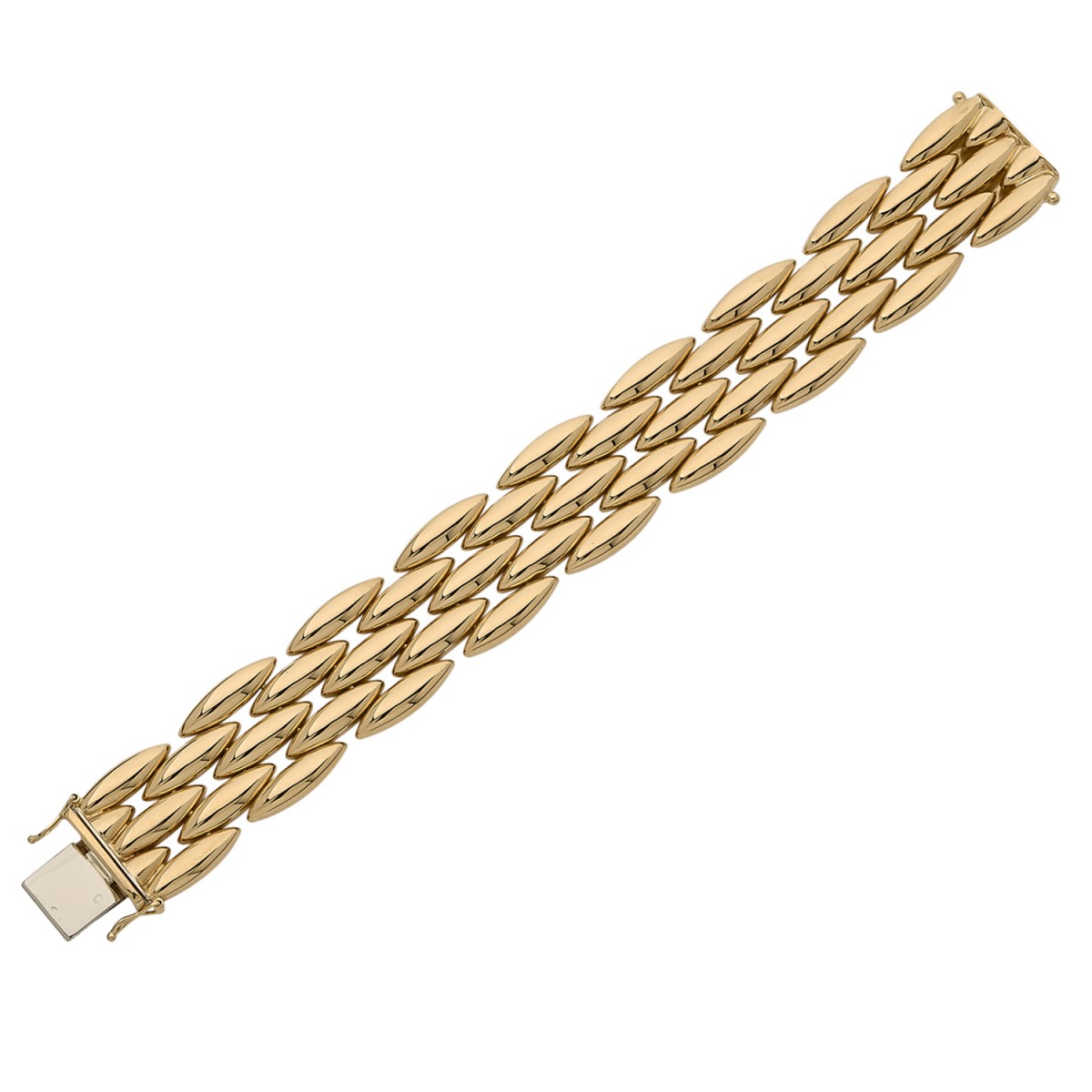 Bracelet en or jaune, composé de 5 rangs de maillons navettes articulés, agrémenté d’un fermoir à cliquet. Signé et numéroté 958690.