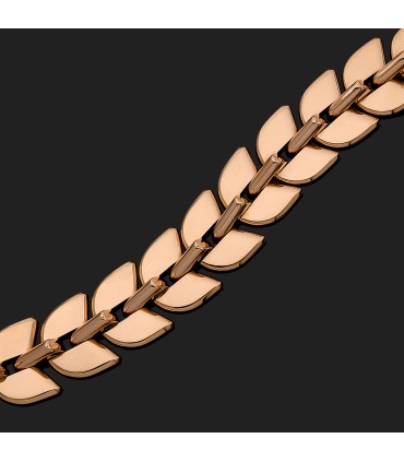 Bracelet en or jaune, composé de maillons articulés stylisant des palmettes, agrémenté d’un fermoir invisible à cliquet. Signé et numéroté.