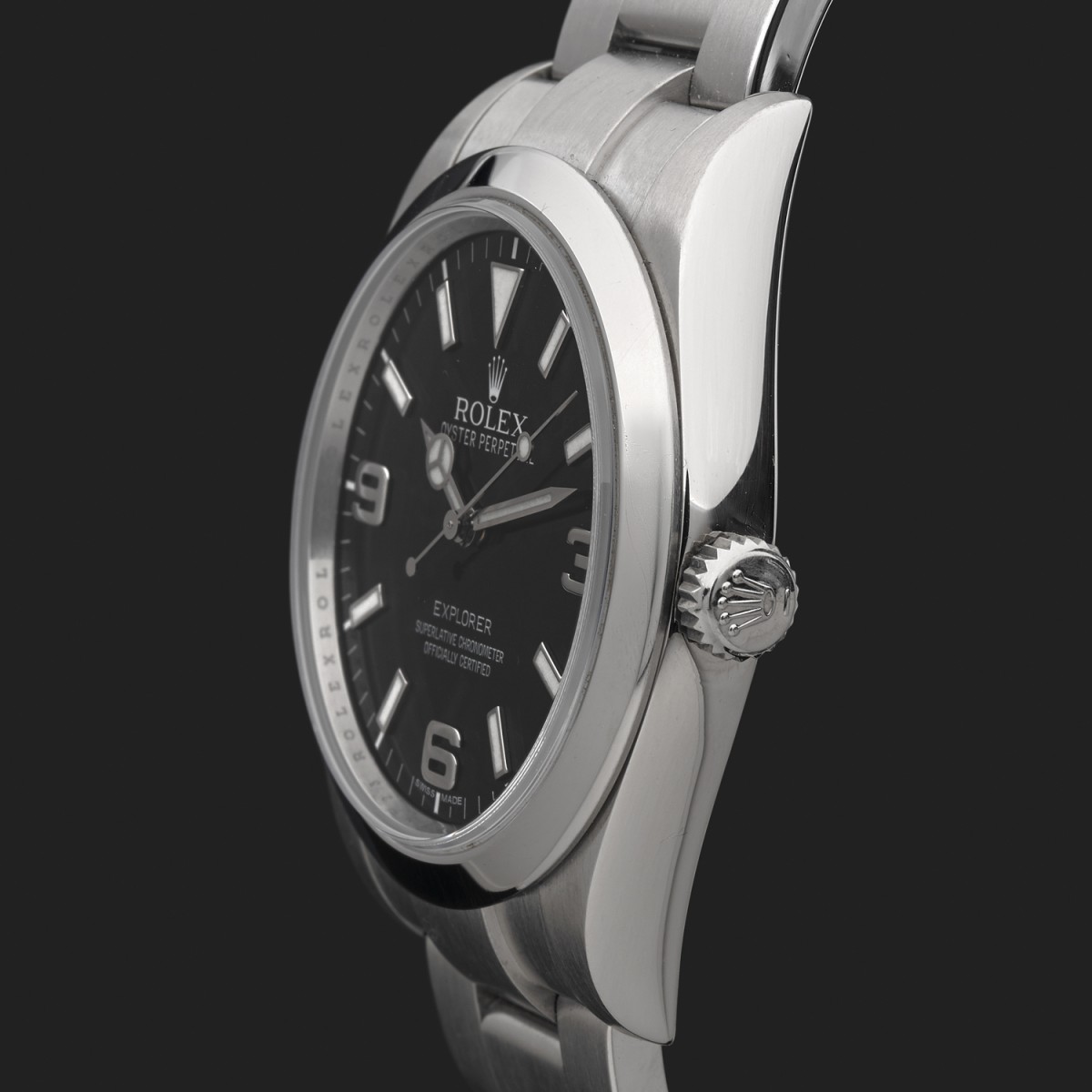 Montre bracelet en acier, cadran noir avec chiffres arabes et index appliqués luminescent. Mouvement automatique. Bracelet acier, maillons oyster avec boucle déployante réglable en acier. Signée et numérotée 114270 / V246834.