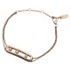 Bracelet en or rose, composé d’une double chaîne maille forçat, centré d’un motif orné de 3 diamants mobiles. Signature ponctuée d’un diamant.