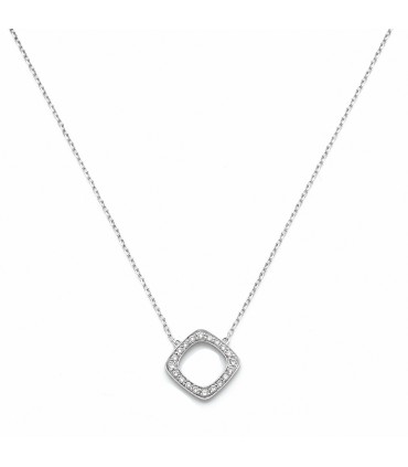 Collier en or blanc, maille forçat, centré d’un motif carré ajouré orné de diamants. Signé.