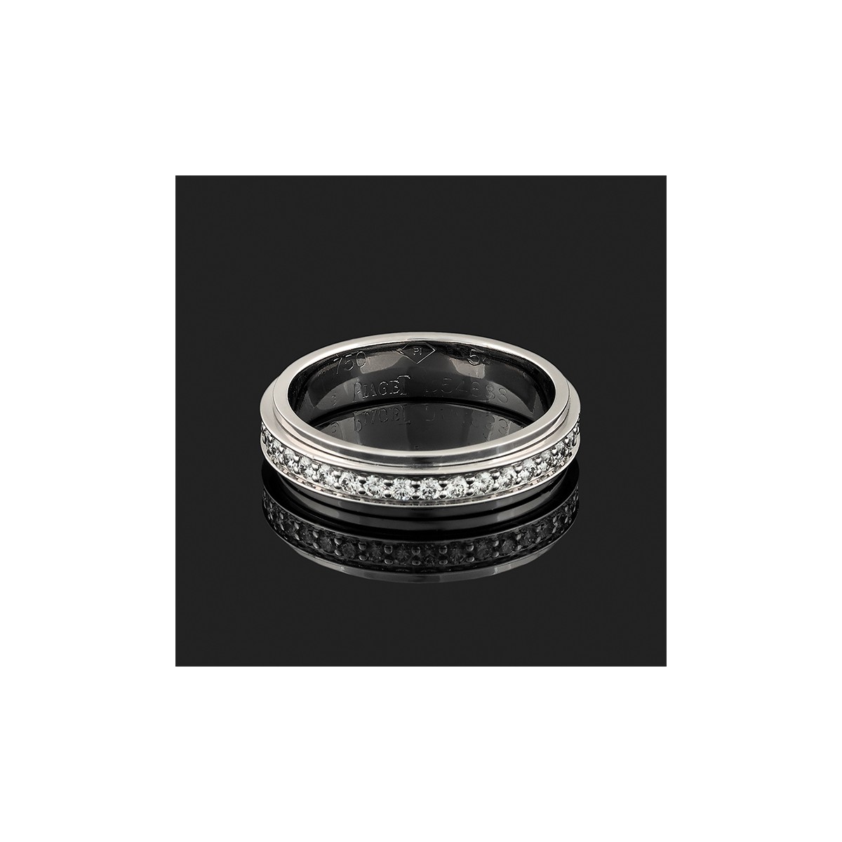 Alliance en or blanc, ornée d'un anneau mobile pavé de diamants. Signée et numérotée.