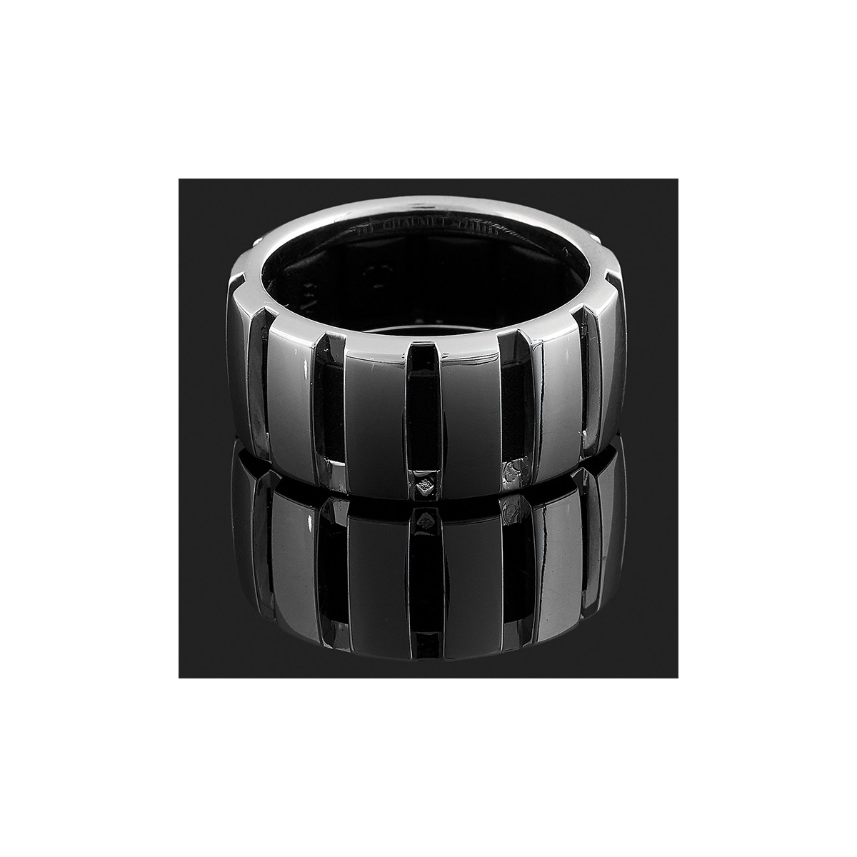 Bague en or blanc ajouré et caoutchouc noir, ponctuée de 2 lignes de diamants. Signée et numérotée.