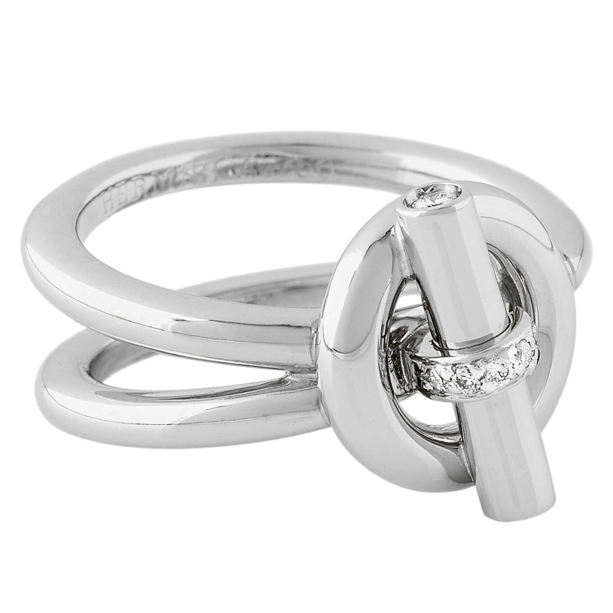 Bague en or blanc, stylisant un motif bâtonnet ponctué de 2 diamants retenu par un lien diamanté. Signée et numérotée.