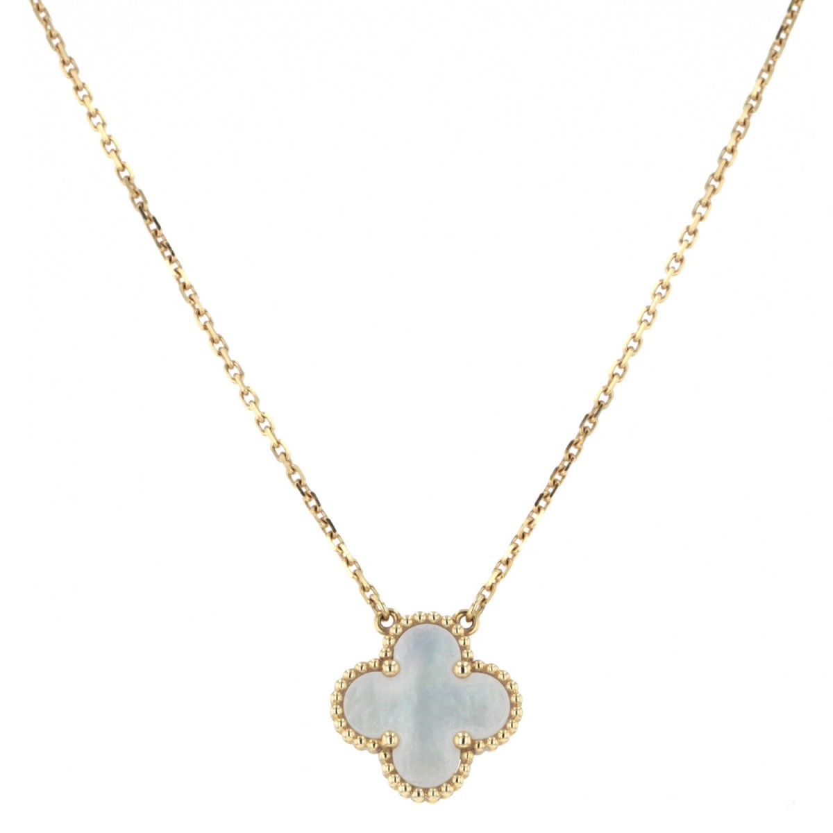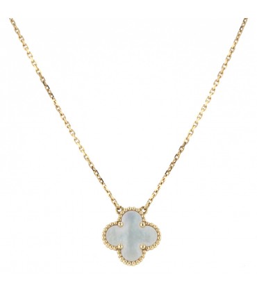 Collier en or jaune, maille forçat, centré d’un motif Alhambra en nacre. Signé et numéroté.