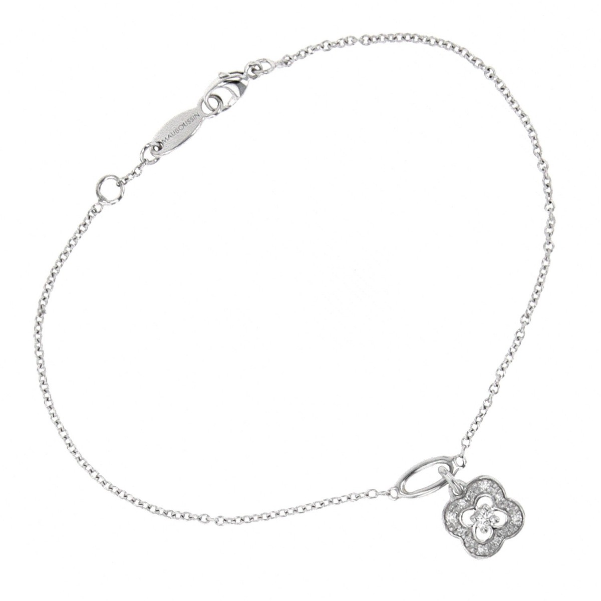 Bracelet en or blanc, maille forcat, retenant en pampille un motif polylobé orné de diamants. Signée et numérotée.