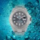 Montre bracelet d’homme en acier, cadran gris rayonnant avec index appliqués, affichage de la date par guichet à 3 heures, lunette tournante graduée en platine. Mouvement automatique. Bracelet acier, maillons oyster avec boucle déployante réglable en acier. Signée et numérotée réf. 116622.