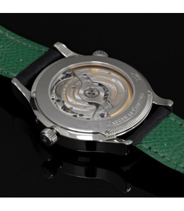 Montre bracelet d’homme en acier, cadran noir avec index appliqués, affichage de la date et de la réserve de marche. Second fuseau horaire avec indicateur jour/nuit avec disque des 24 villes. Fond de boîte transparent dévoilant son mouvement automatique. Bracelet cuir noir doublé vert avec boucle déployante réglable en acier. Signée et numérotée 142.8.92.S.