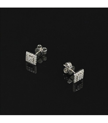 Boucles d’oreilles en or blanc, stylisant un motif carré ajouré orné d’un pavage de diamants.