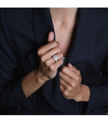 Bague en or blanc, ornée d’un pavage de diamants centré d’un diamant plus important en serti clos. Signée.