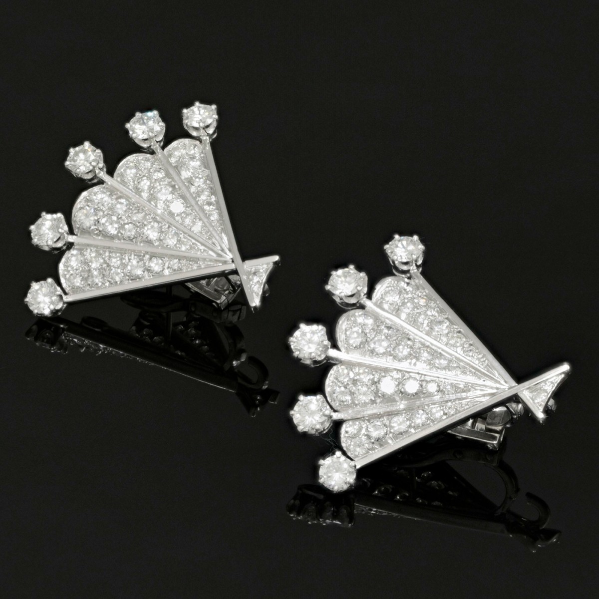 Diamonds, 18k gold and platinum earrings. Circa 1910.
