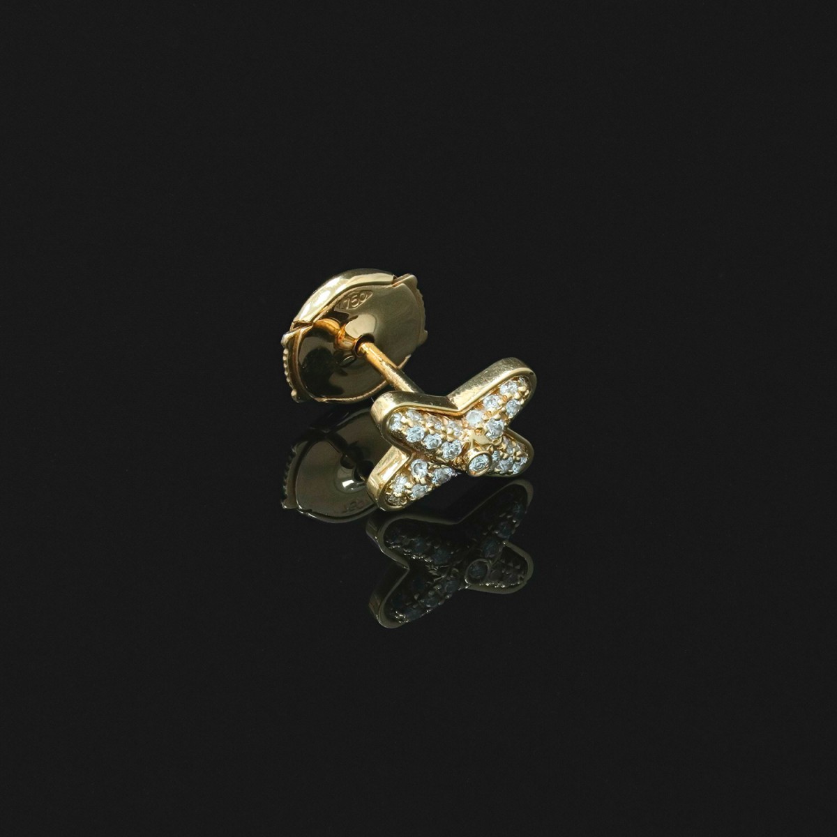 Mono boucle en or jaune, stylisant le motif “liens” iconique de la maison Chaumet orné d’un pavage de diamants. Signée et numérotée.