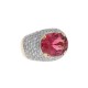 Bague 2 tons d’or, ornée d’une importante tourmaline rose ovale facettée en serti griffe, la monture rehaussée d’un pavage de diamants.