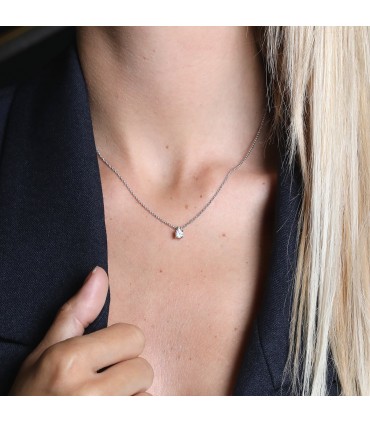 Collier en or blanc, maille jaseron, centré d’un diamant de 0,30 ct en serti griffe, la bélière rehaussée de petits diamants. Signé et numéroté.
