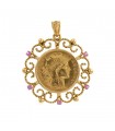 Pendentif en or jaune, ornée d’une turquoise en cabochon dans un pavage de diamants.