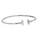 Bracelet jonc ouvert souple en or blanc, les embouts stylisant un T. Signé.