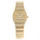 Montre bracelet de femme en or jaune, cadran or stylisé avec index appliqués. Mouvement quartz. Bracelet or jaune, maillons articulés avec fermoir invisible à cliquet. Signée et numérotée.