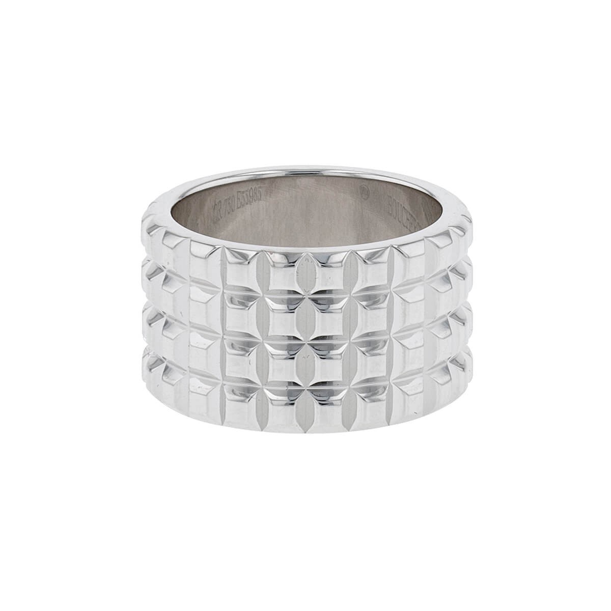 Bague large en or blanc, à décor de motifs “clou de Paris”. Signée et numérotée.