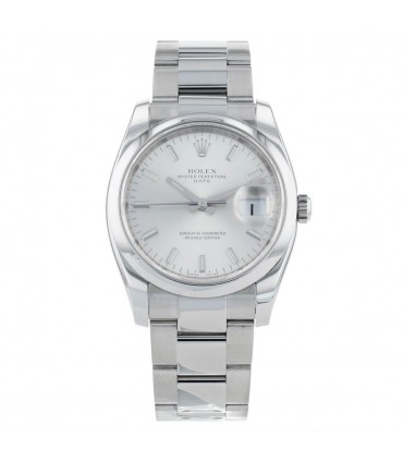 Montre bracelet en acier, cadran argenté rayonnant avec index bâtons appliqués, affichage de la date par guichet à 3 heures. Mouvement automatique. Bracelet acier, maillons oyster avec boucle déployante réglable en acier. Signée et numérotée réf. 115200.