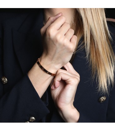 Bracelet rigide ouvert en or rose, à décor de vis. Signé et numéroté.