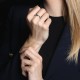 Alliance en or blanc, stylisant 2 anneaux travaillés en relief aux motifs de godron et clous de Paris. signée et numérotée.